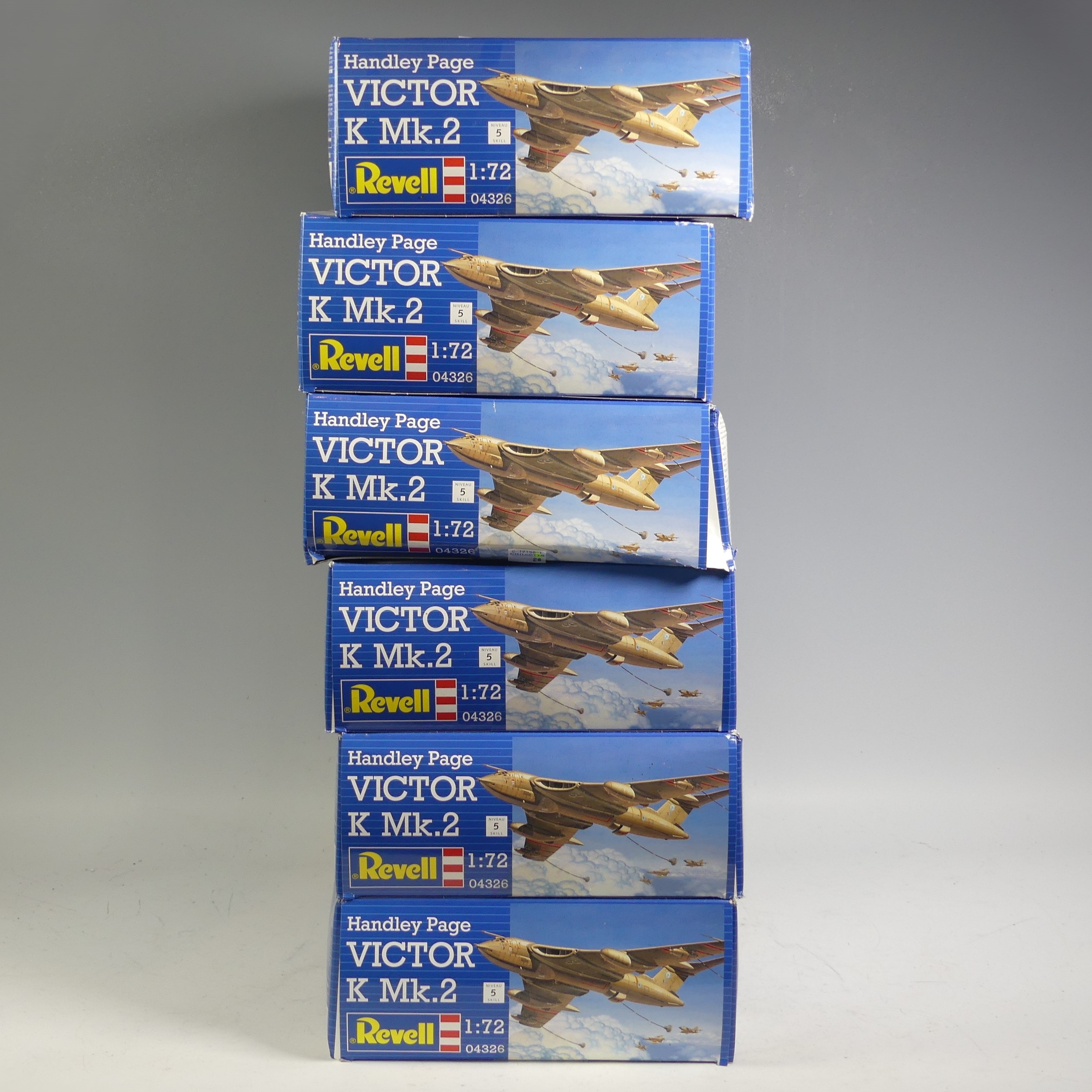 Six boxed Revell 1/72 scale plastic military plane model Kits, all being 04326 Handley Page Victor K Mk 2, all unbuilt and appear complete(6)