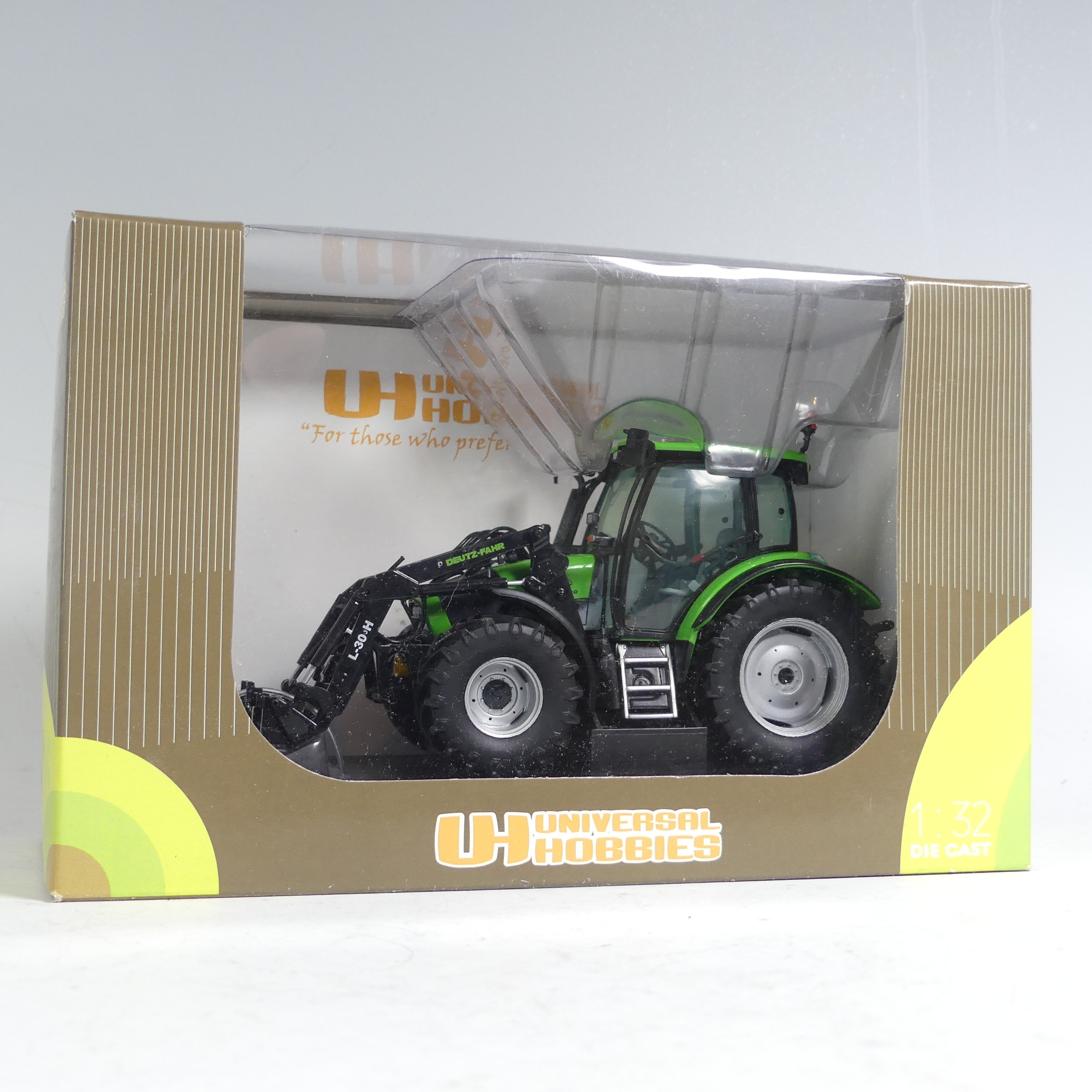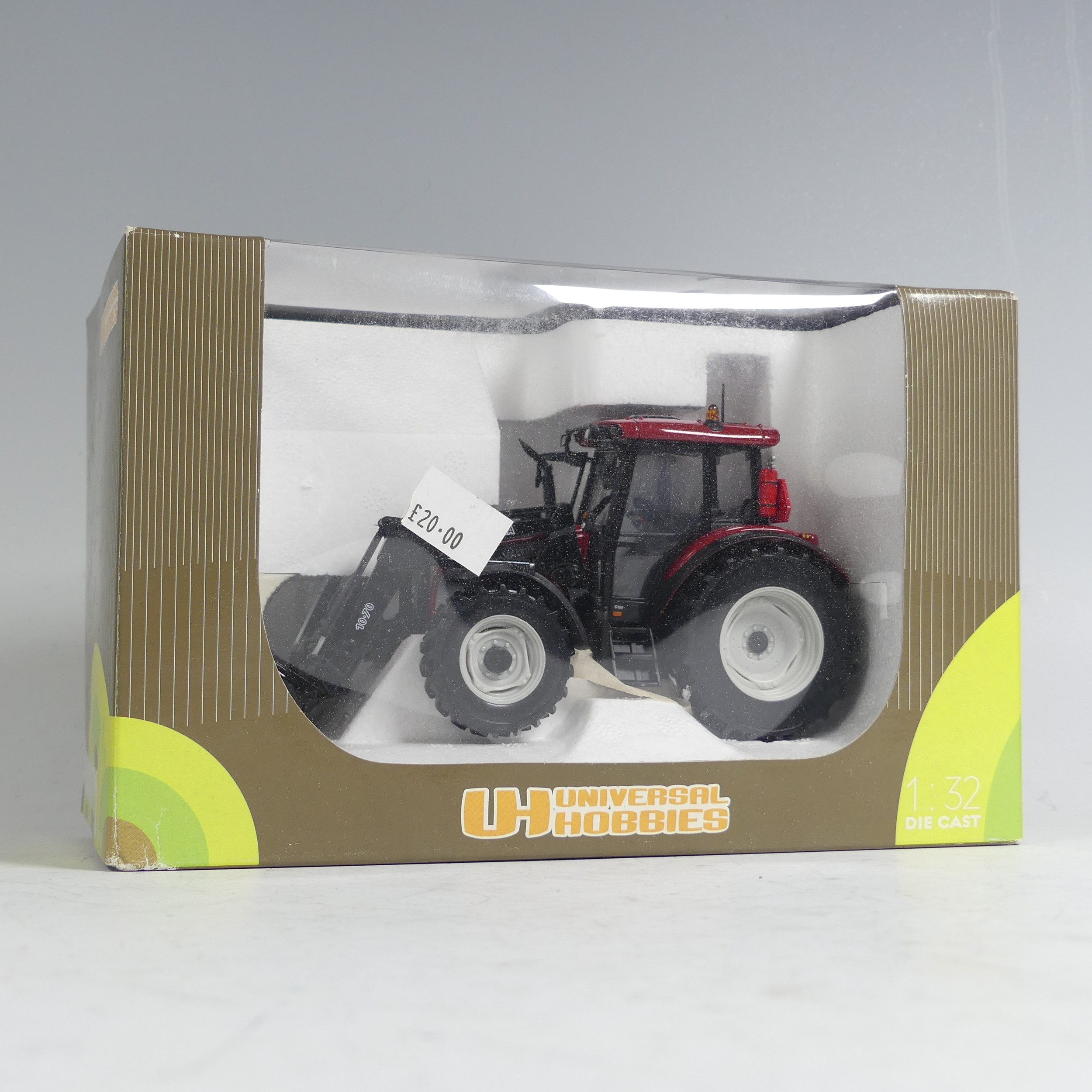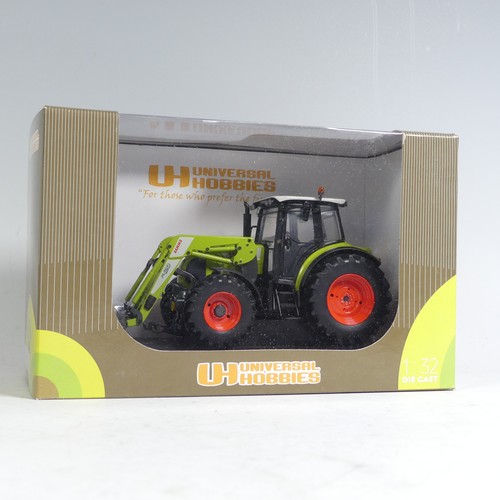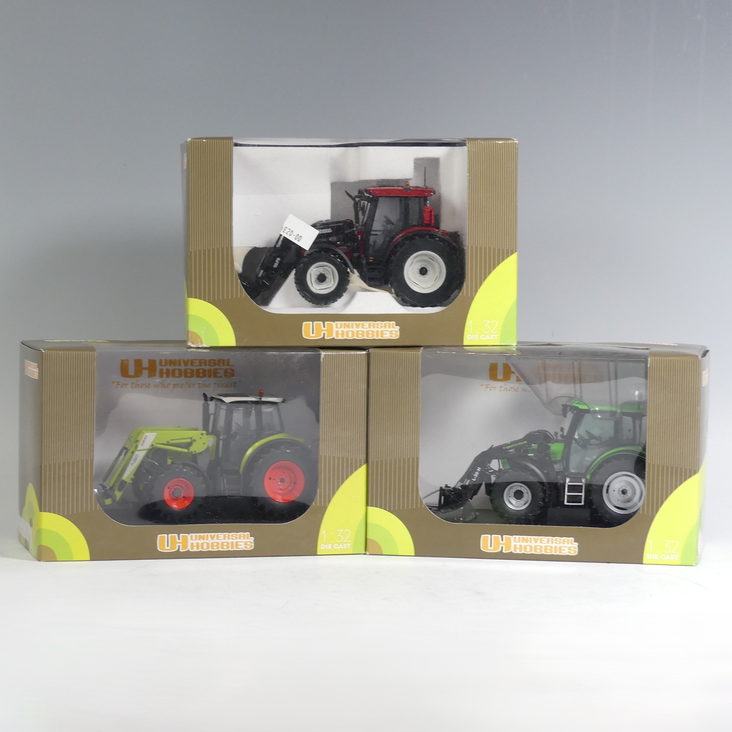 A Universal Hobbies 1:32 Valtra C series with front loader model Tractor, 2365,'Country' Model Farm Issue, together with a Universal Hobbies 1:32 Deutx KT 100 with fork model Tractor, 2584, 'Country' Model Farm Issue, and a Universal Hobbies 1:32 Claas Arion 430 with front loader model Tractor, UH2950, 'Country' Model Farm Issue(3)