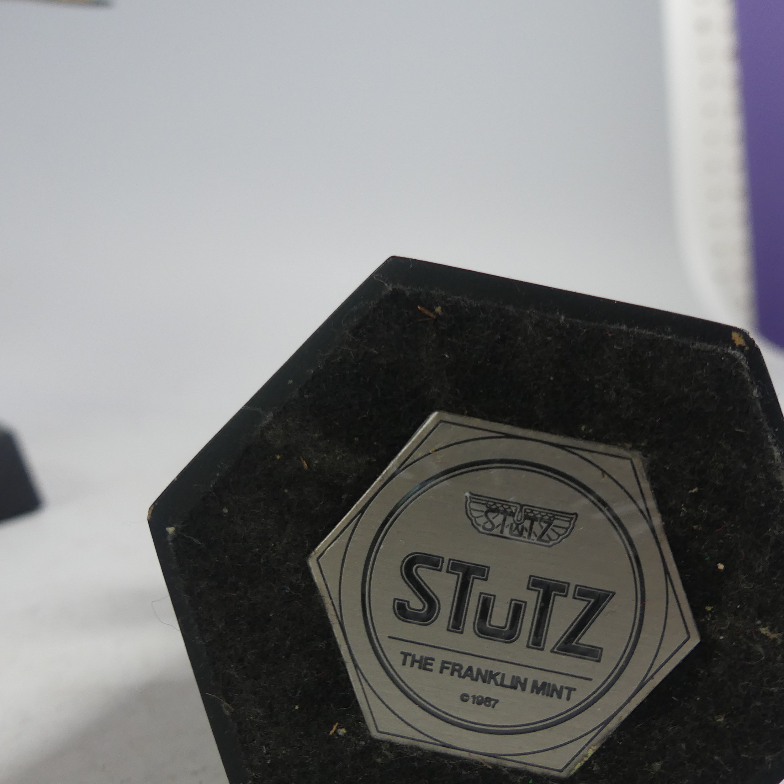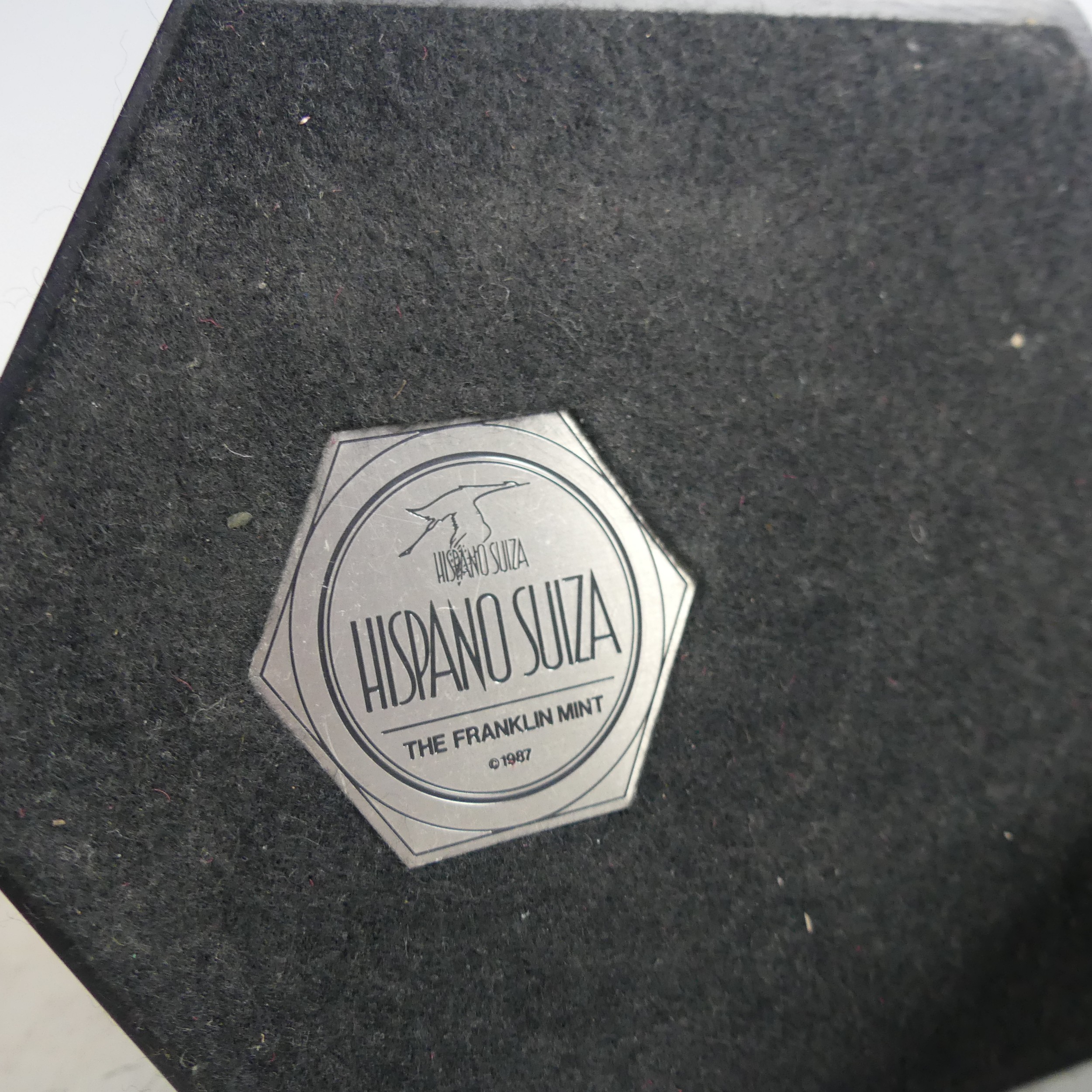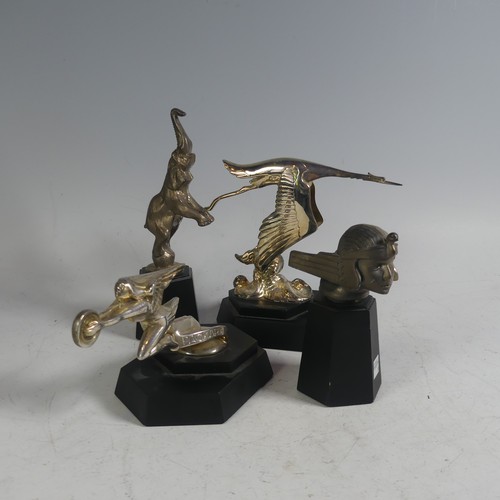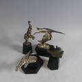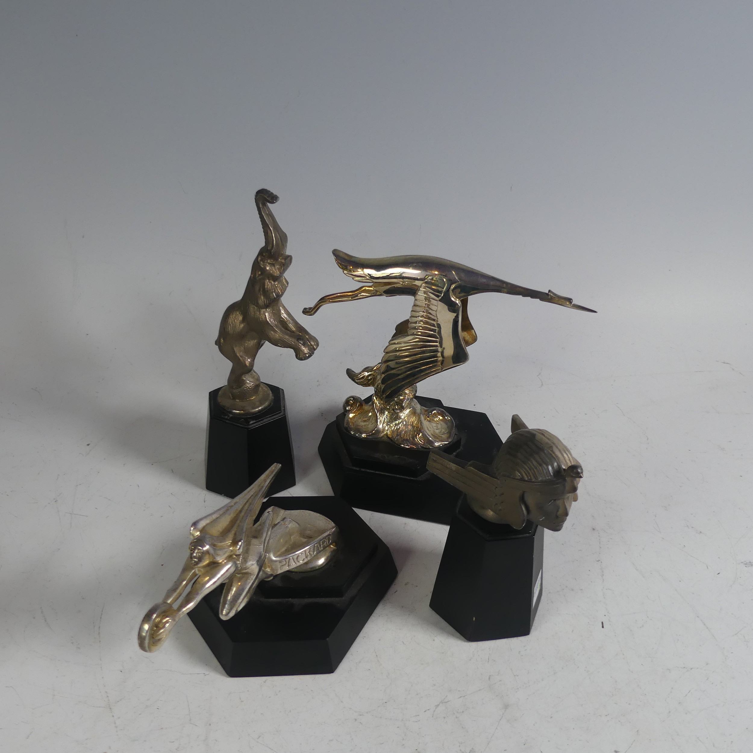 A mounted Franklin Mint mascot of the Hispano Suiza, together with three other Franklin Mint mounted car Mascots, including Bugatti, Stutz, and Packard(4)