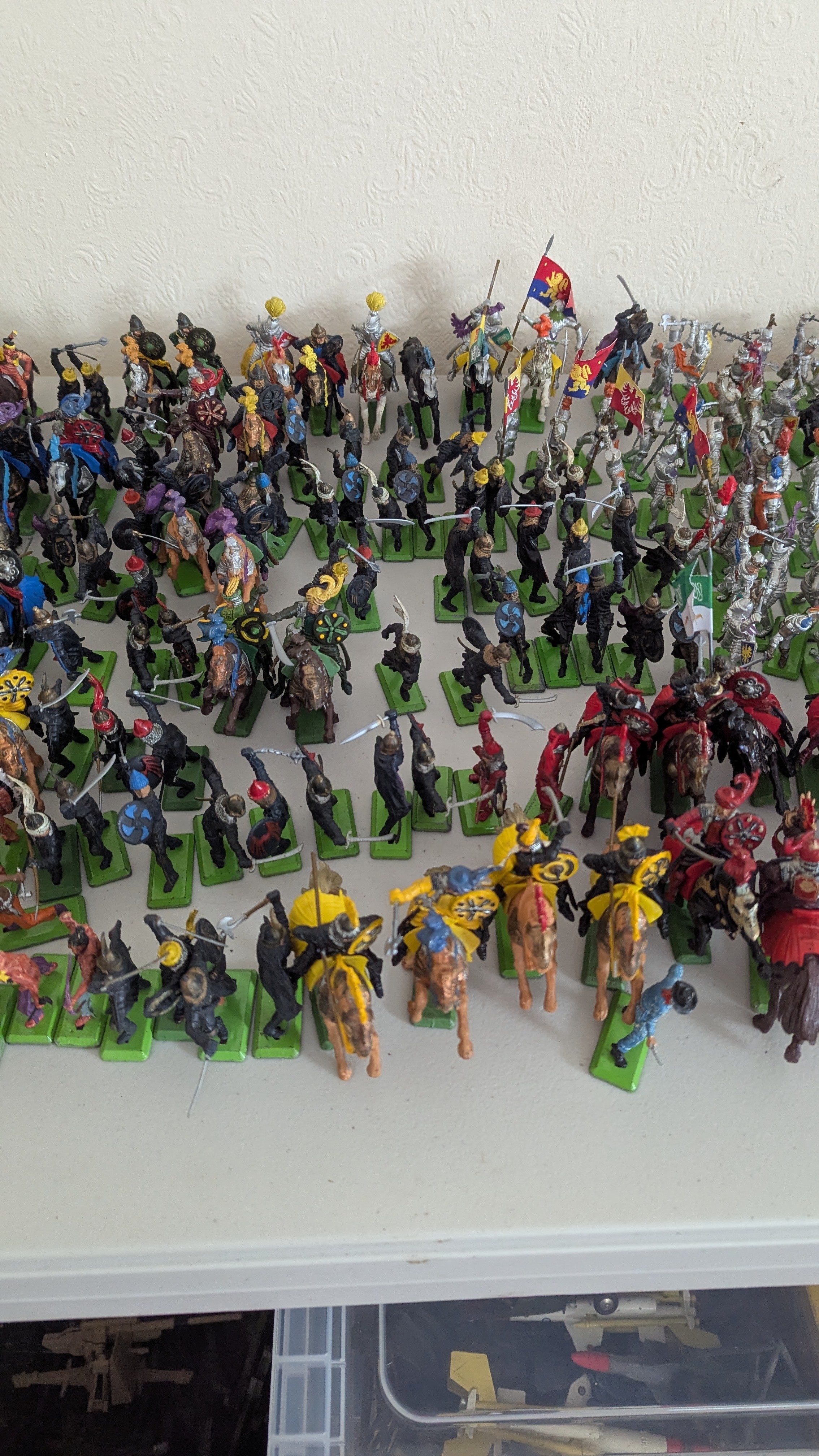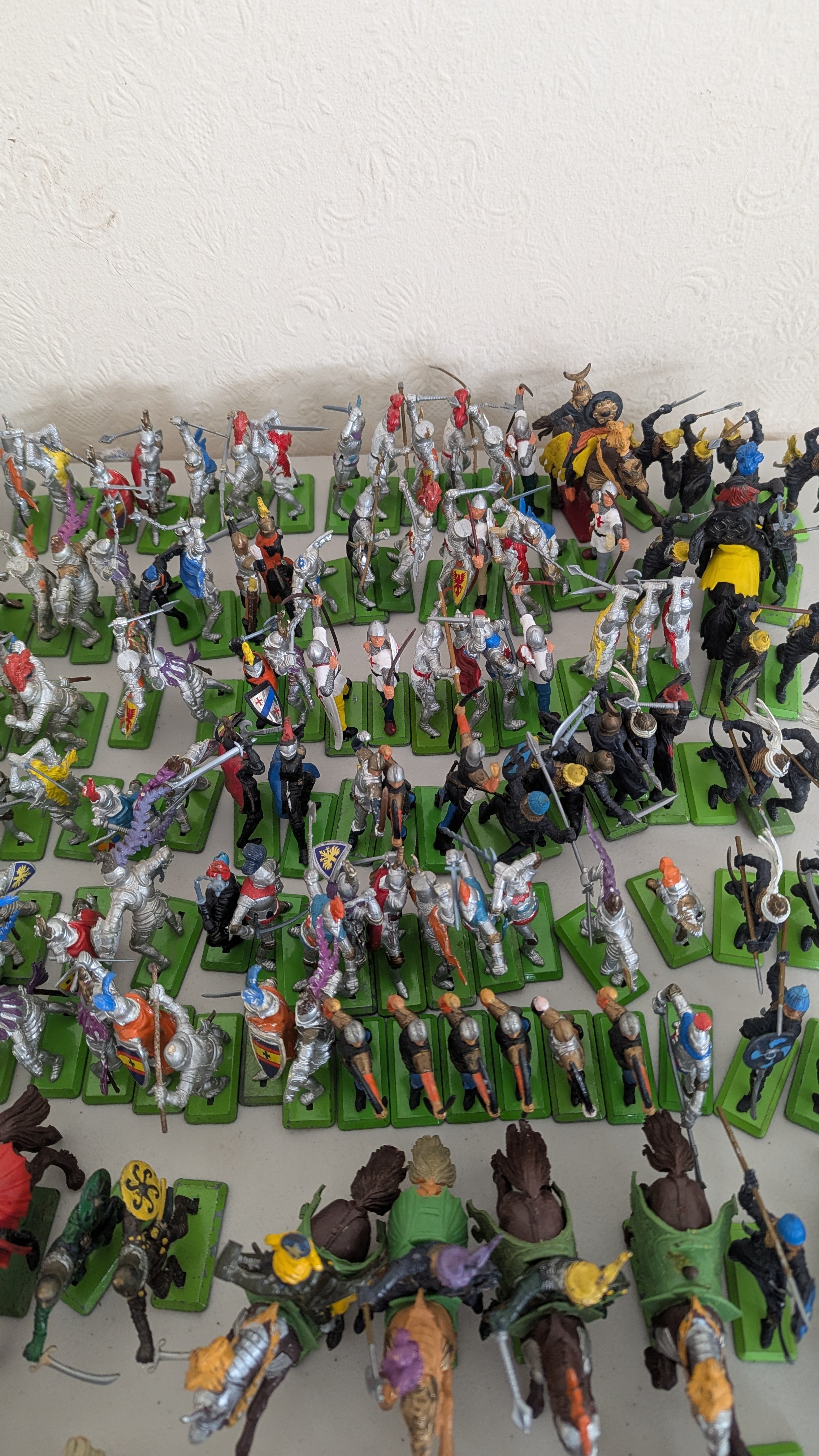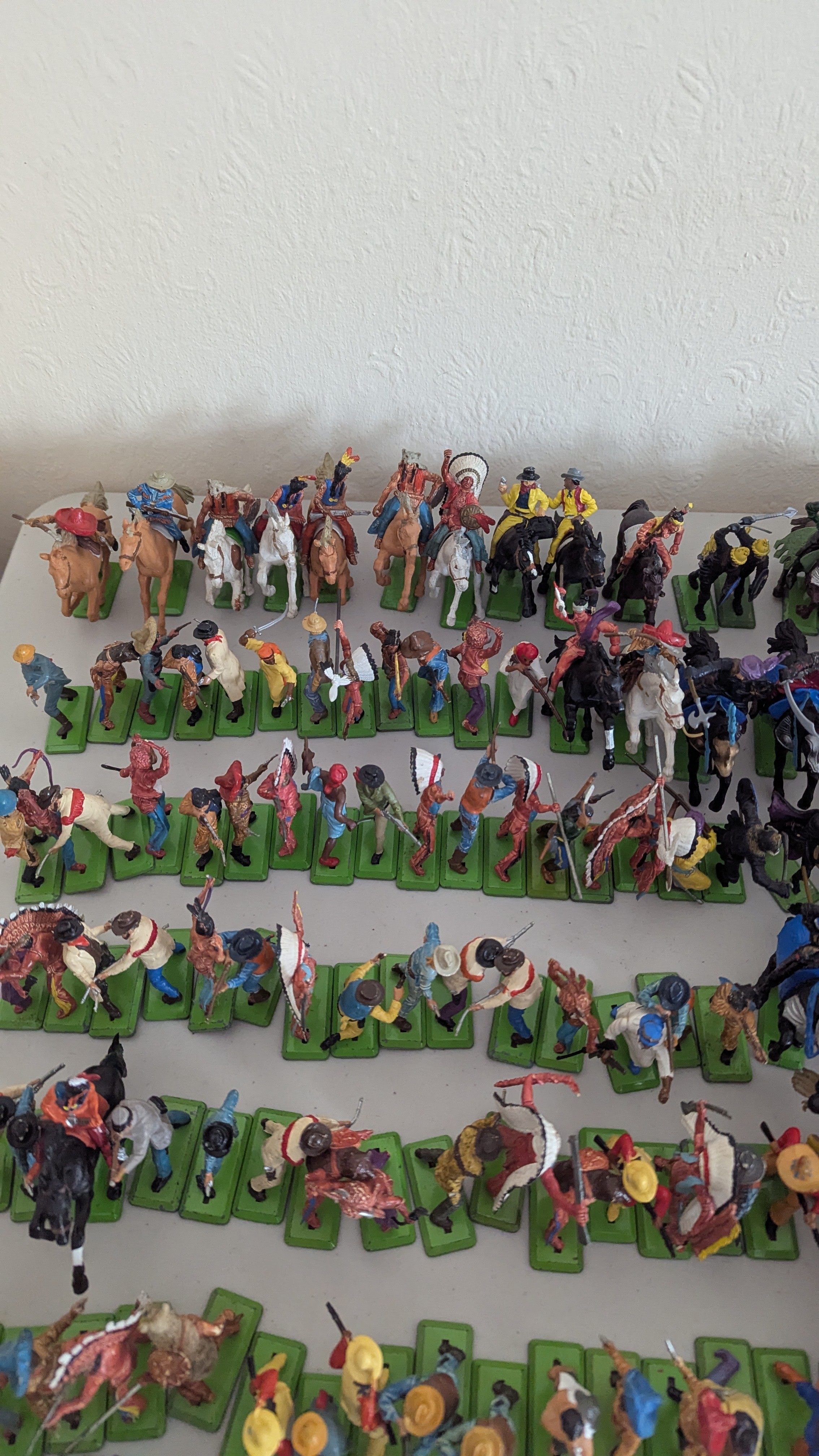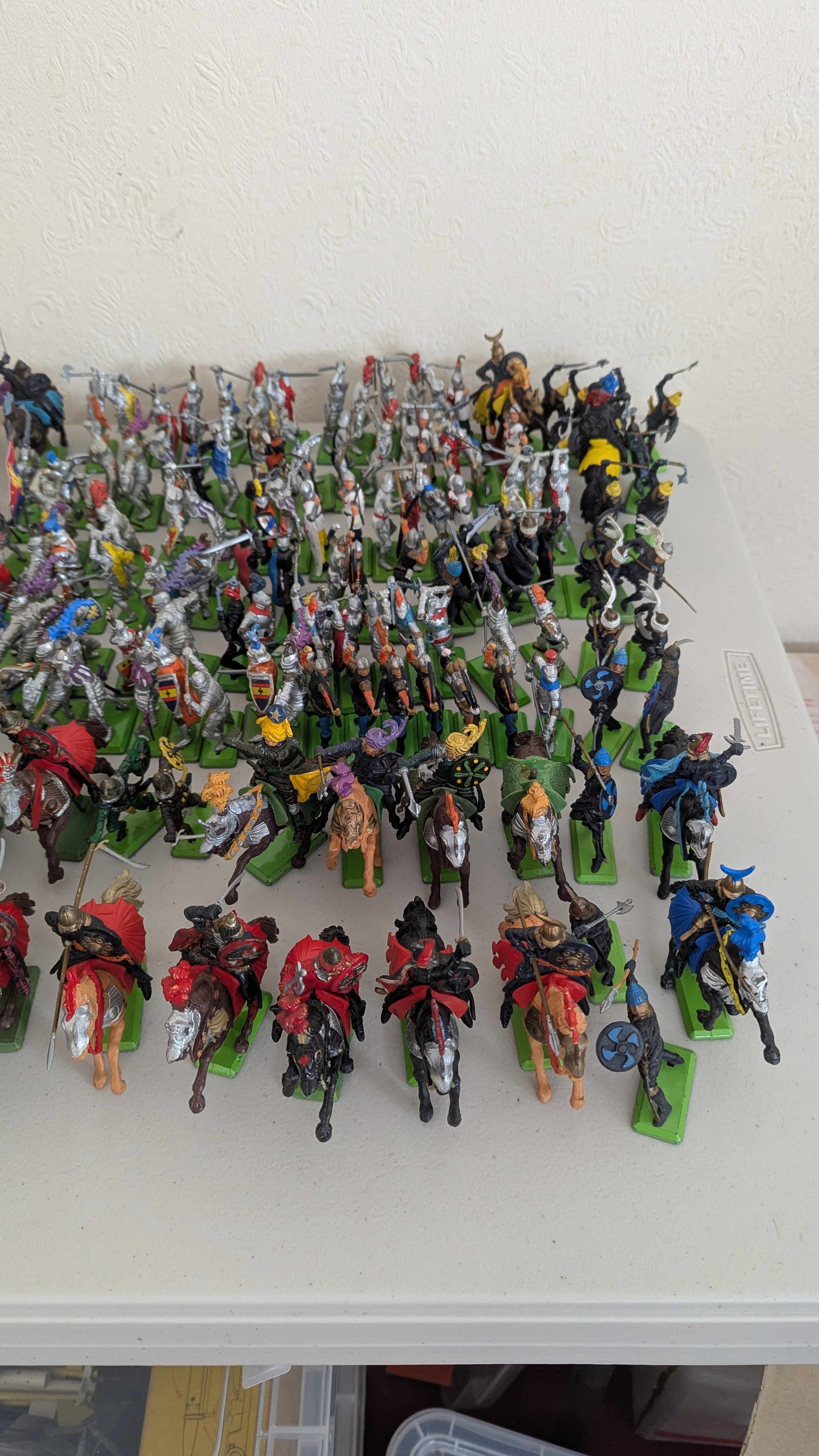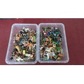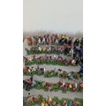 Britains Deetail; A very large collection of unboxed playworn Knights, Turkish, Cowboys and Indian Figures, approximately 300 total, some on horseback, note some have small looses and damages, together with a large collection of China and Hong Kong made plastic playworn Britains Knights, Indians, Cowboys and Farmyard Animals, over 200 in total, also with buildings, canoes, trees, etc, note some with losses and damages(a lot)